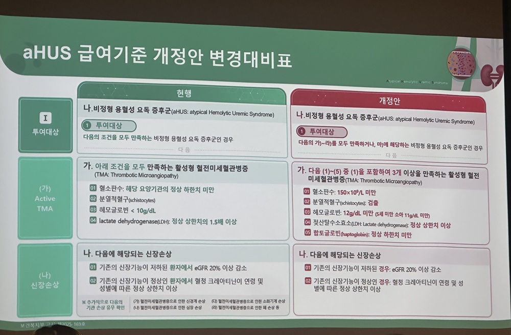 Myung-Gyu Kim of Korea University Anam Hospital (Nephrology) The reimbursement criteria for C5 complement inhibitors in atypical hemolytic uremic syndrome (aHUS) have been eased this month.
