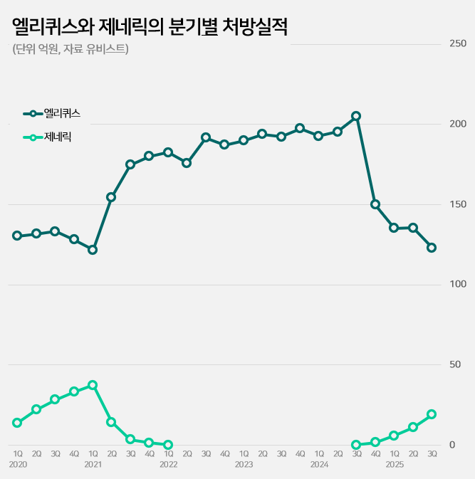 Market share around 13% According to the market research institution UBIST on the 20th, Eliquis generics recorded combined prescription sales of KRW 1.9 billion in Q3.