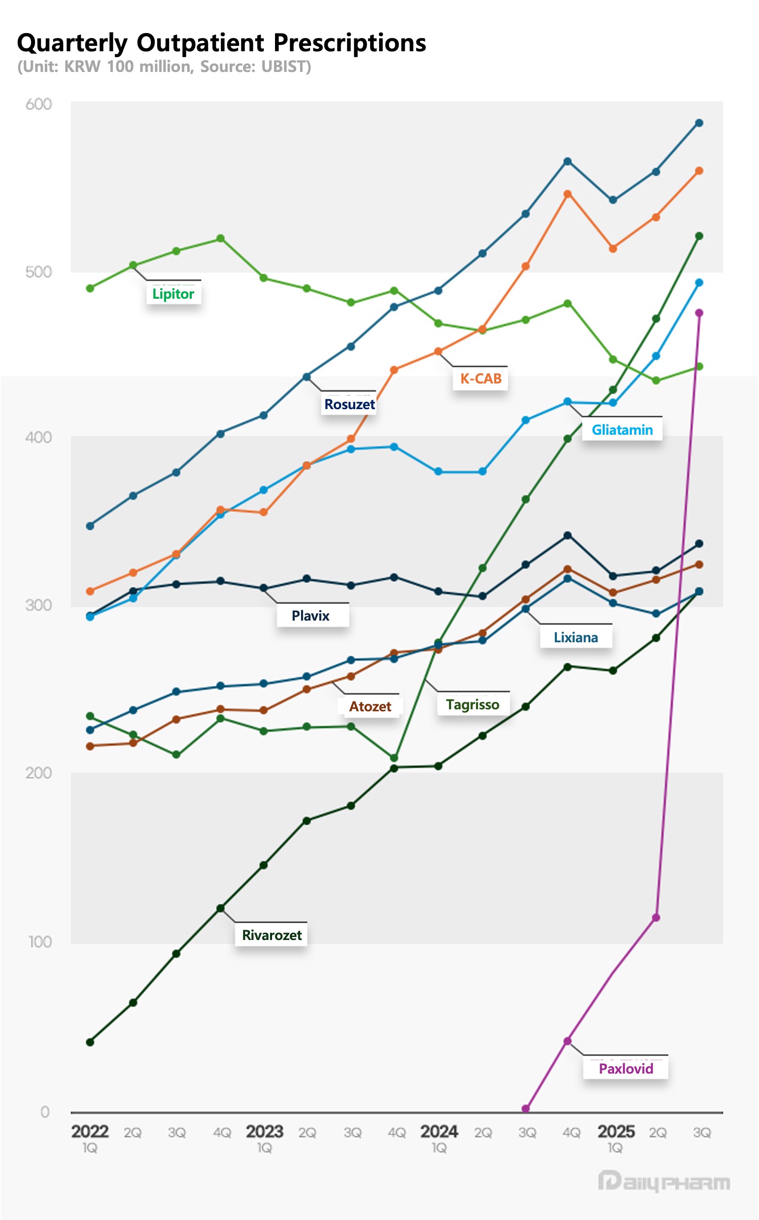 Pfizer’s COVID-19 treatment Paxlovid ranked fifth overall with KRW 47.7 billion in outpatient prescriptions for Q3 alone.