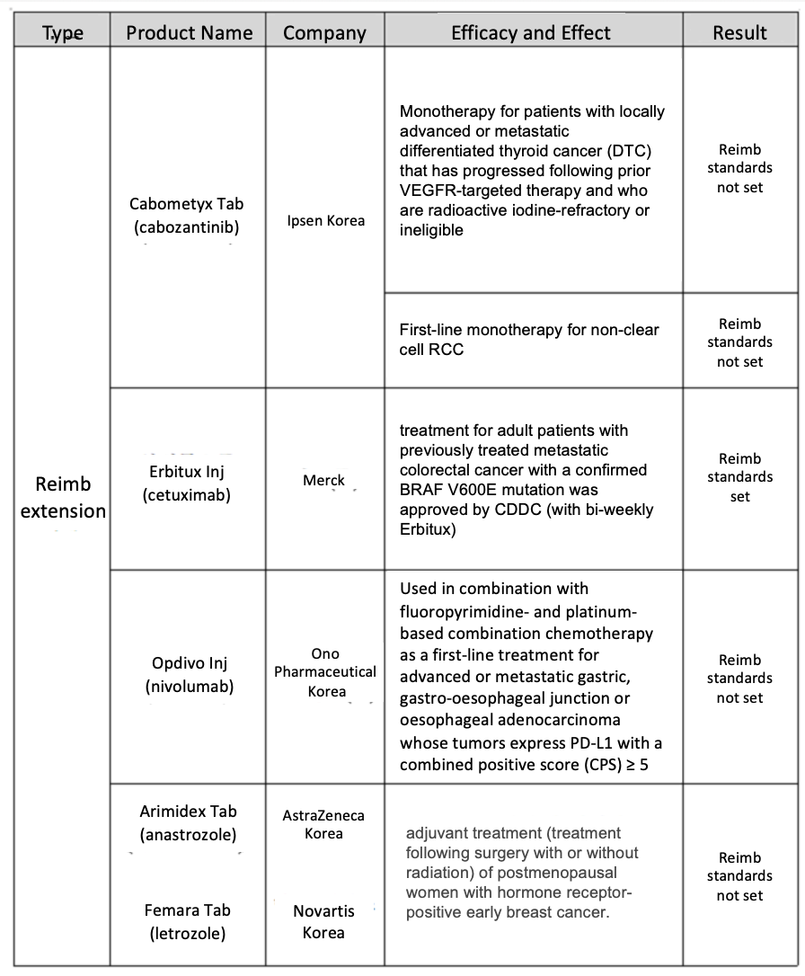 The CDDC held a meeting on the 28th to review reimbursement for new anti-cancer drugs and extend reimbursement for listed drugs.