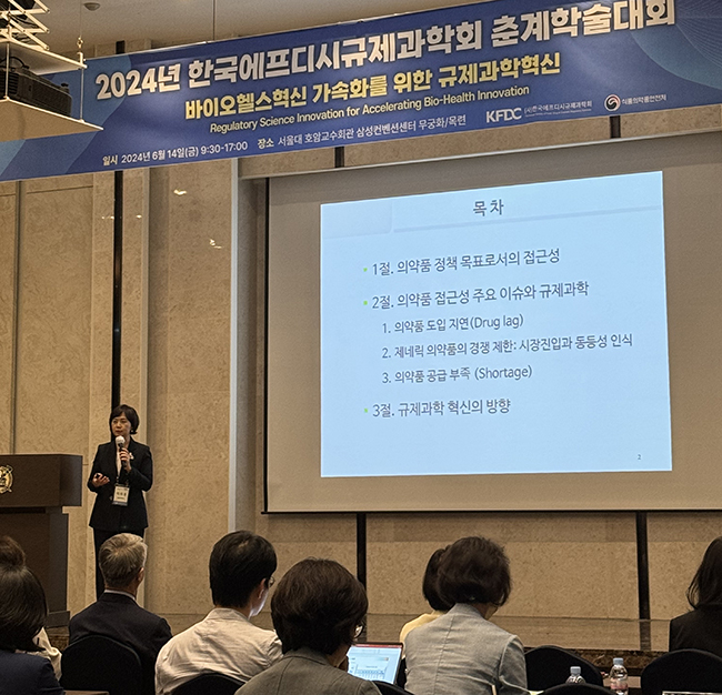 Lee delivered a speech at the plenary session on the topic of 'Regulatory Science Innovation and Patient Access to Medicines' at the Korean Society of Food, Drug & Cosmetic Regulatory Sciences (KFDC)’s spring academic conference on June 14th.