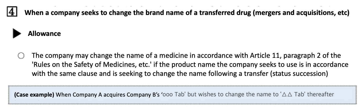 However, during the revision of the citizen’s guide, the MFDS has given a clear answer that "it is possible to use” the previous product’s name in the event of a product transfer (merger or acquisition, etc.).
