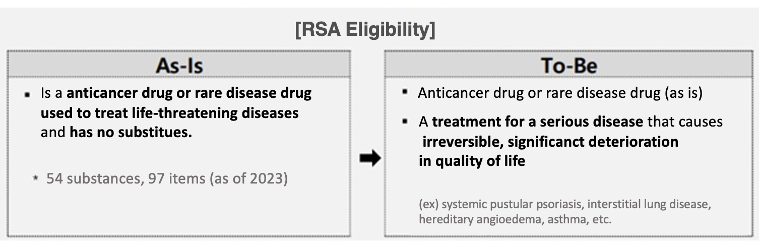 The government will improve patient access to drugs by expanding risk-sharing system (RSA) treatments for serious diseases that cause significant and irreversible deterioration in quality of life.