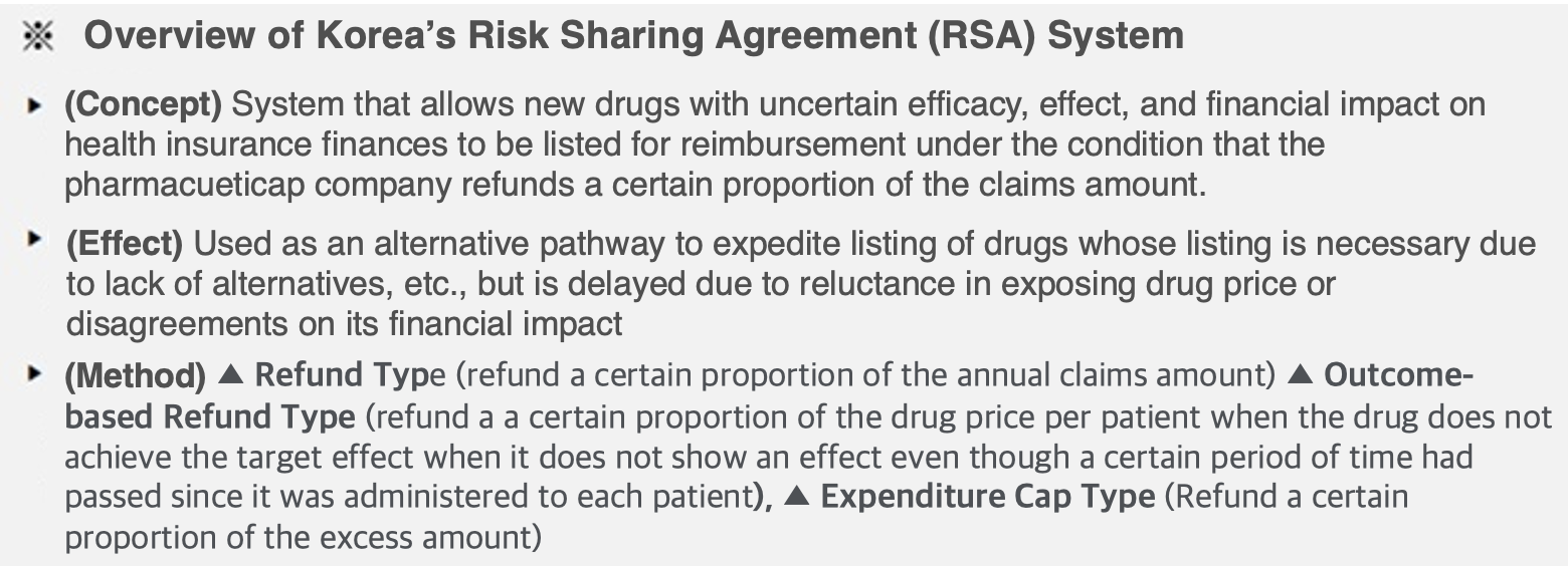 To reduce the patient’s burden of medical expenses as well as the government’s health insurance finances, various types of risk-sharing systems, including outcome-based reimbursement, will be applied to newly listed drugs.