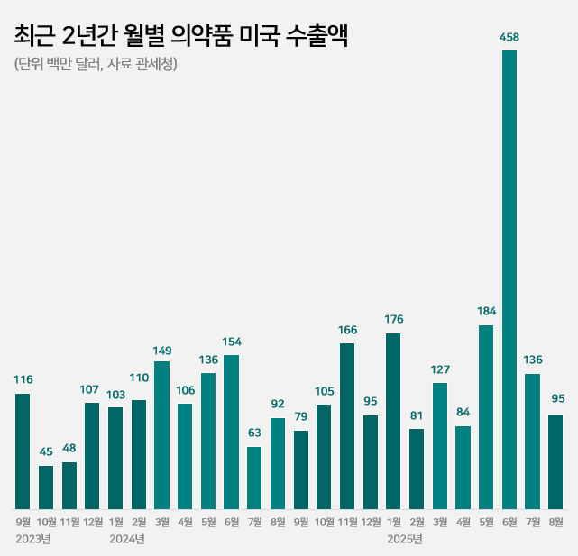 The surge in Korean pharmaceutical exports to the United States—driven by concerns over possible tariffs—returned to normal levels within 2 months.