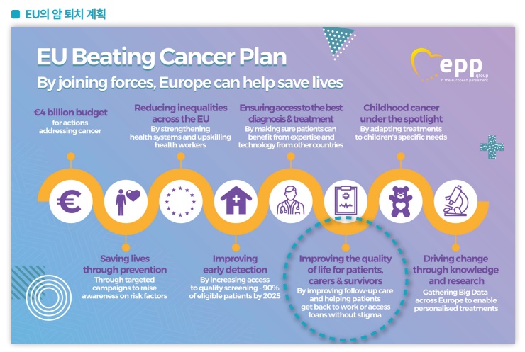 President Biden's 'Cancer Moonshot Initiative' and the EU's ‘Beating Cancer Plan.’ On the other hand, the paper criticized that in Korea, improving the quality of life of cancer patients is being pushed back from the priority list of health authorities due to frequent transfers of officials from the relevant ministries and seasonal changes in national health issues.