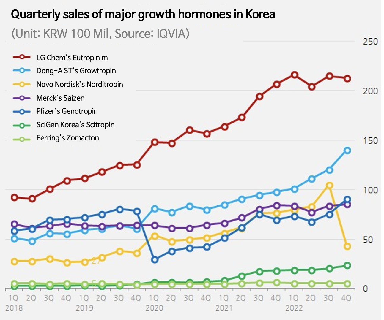 Last year, LG Chem’s Eutropin made KRW 84.8 billion, and Dong-A ST’s Growtropin KRW 47.3 billion.