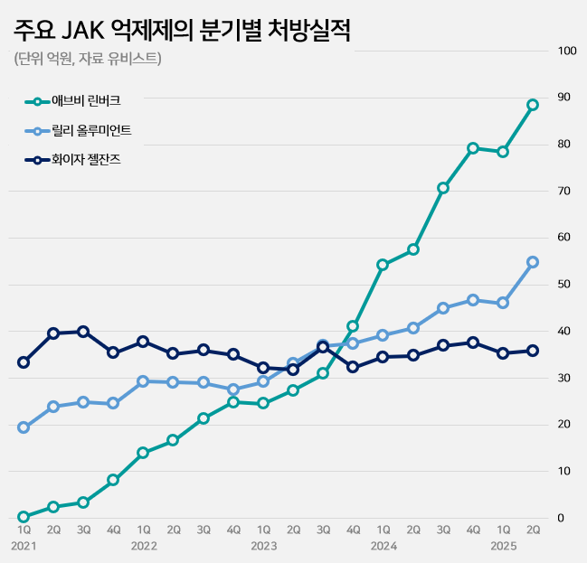 According to UBIST, a pharmaceutical market research institution, outpatient prescriptions of JAK inhibitors in the first half of this year reached KRW 38.6 billion, up 40% from the KRW 27.5 billion in the same period last year.