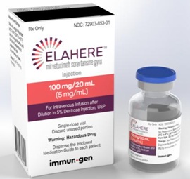 Elahere is an ADC targeting ovarian cancers expressing FRα (folate receptor alpha).