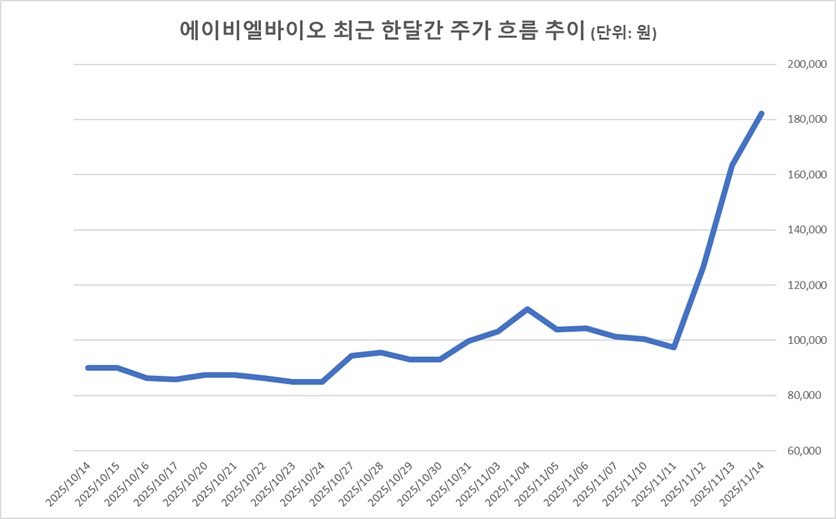 Compared to the closing price of KRW 97,500 on the 11th, ABL Bio's stock price jumped approximately 78.7%.