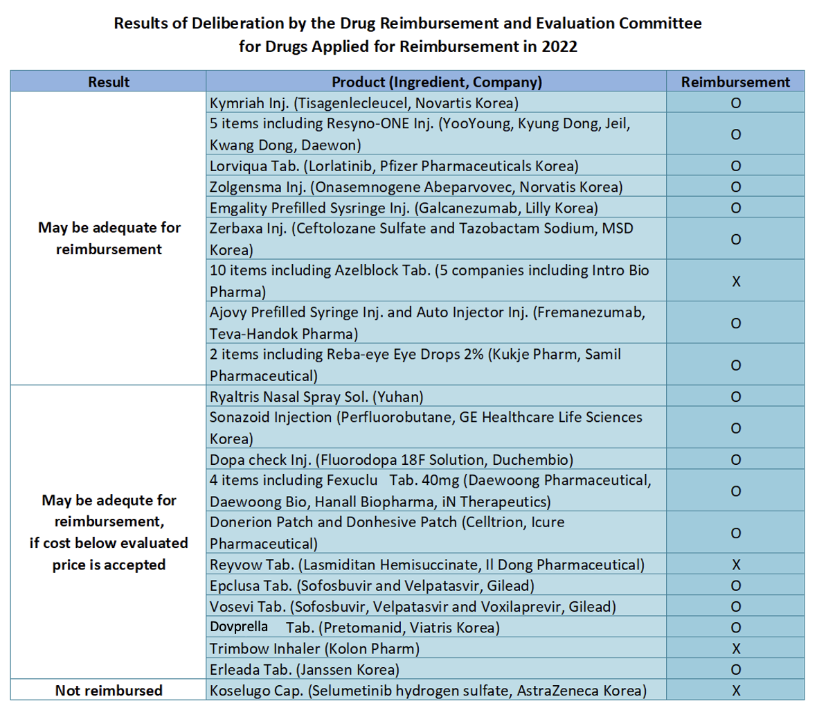 Upon review of the products that filed applications for reimbursement based on results of the 12 DREC meetings that were held in 2022 on the 2nd, Dailypharm found that only 1 of the 21 products that received review was determined non-reimbursable.