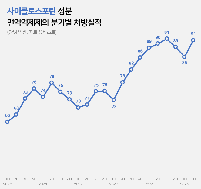 The mycophenolate market showed fluctuations until 2022, posting KRW 12.7 billion in 2020, KRW 11.7 billion in 2021, and KRW 12.8 billion in 2022.