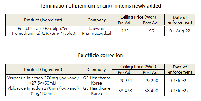 As a result, a total of two items received price cuts through ex-officio adjustments.