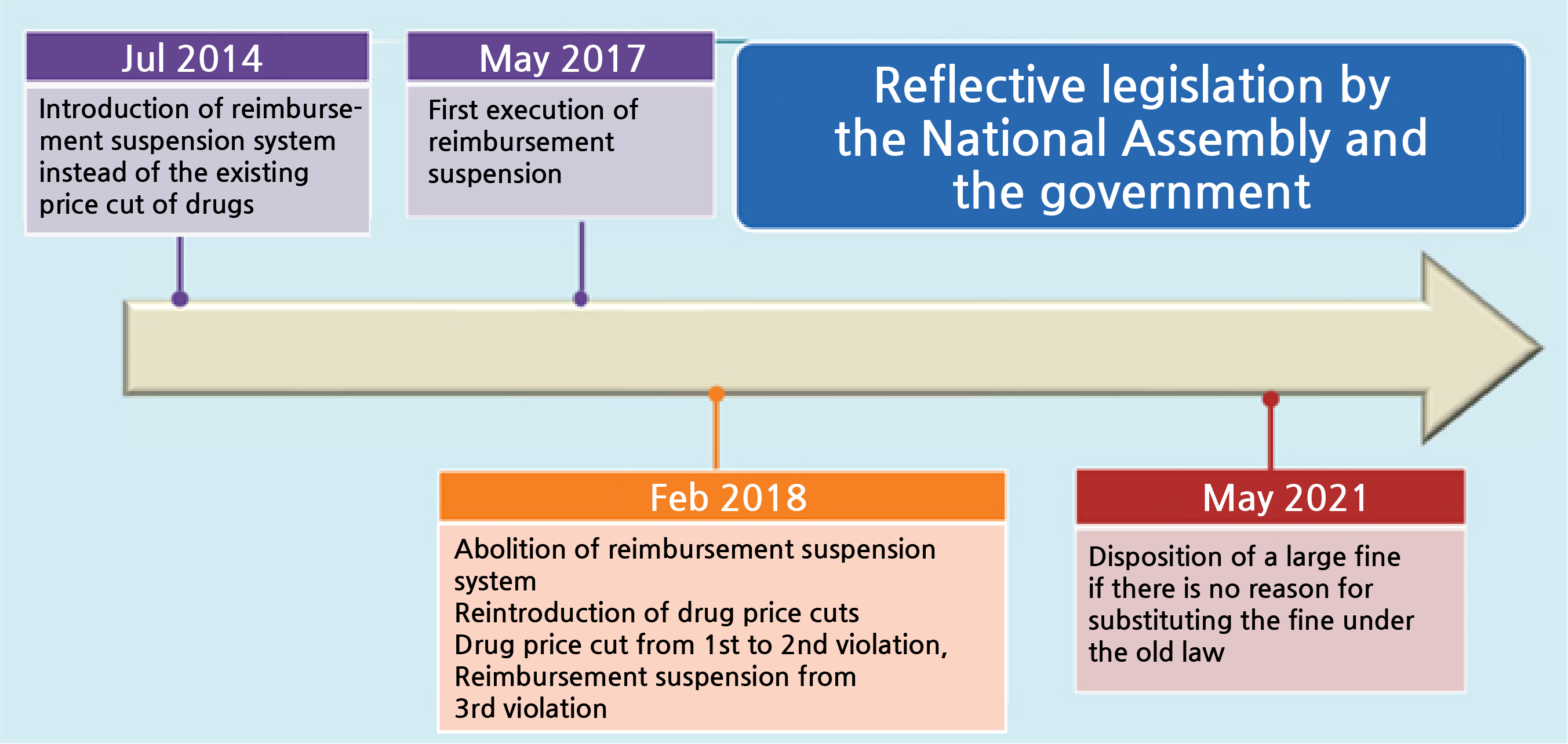 However, due to concerns over hindered patient accessibility and side effects that arise from substituting drugs for non-medical reasons, the government revised the law to impose price cut dispositions rather than reimbursement suspensions in 2018.