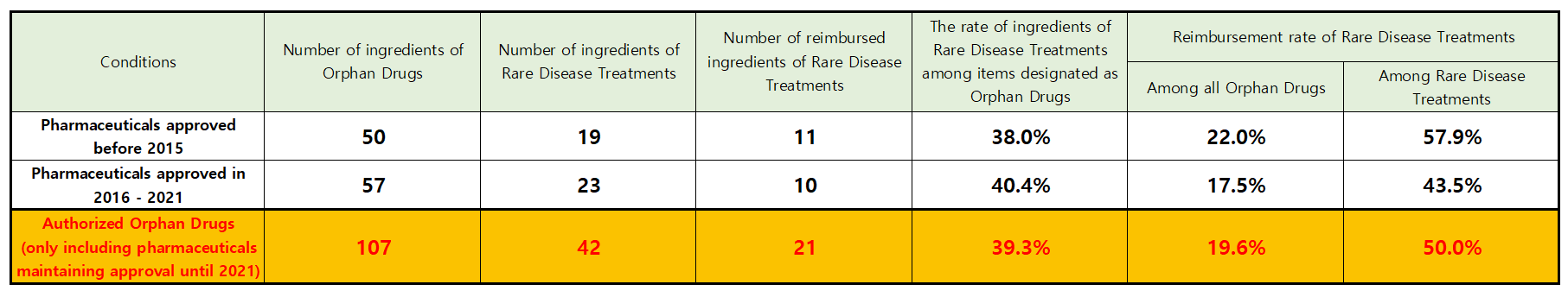 Data studied by the Korean Research-based Pharma Industry Association and the Korea Pharmaceutical and Bio-Pharma Manufacturers Association showed that only 50% of the pharmaceuticals that were designated orphan drugs over the past decade were listed on the reimbursement list.