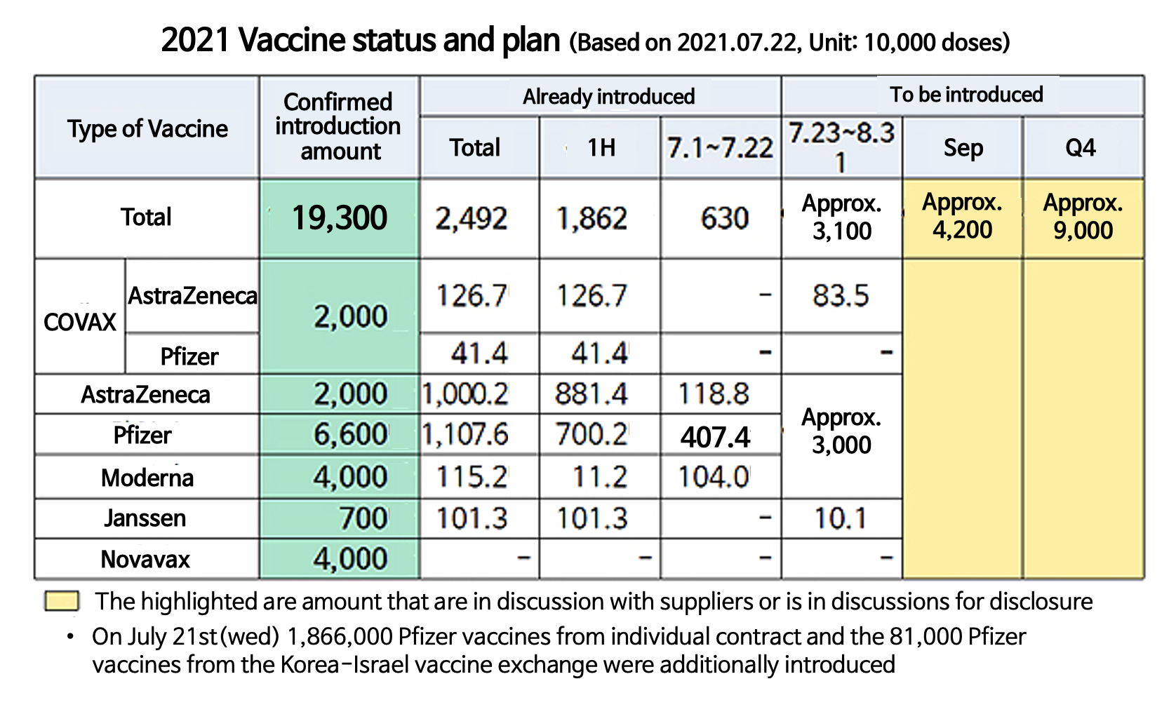 In addition, approximately 31 million doses will be additionally introduced until late August, and the detailed schedule for each vaccine will be provided to the extent allowed as soon as the discussions are finalized with the relevant pharmaceutical companies.