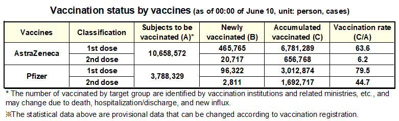 By product, the rate of those first vaccinated with the AstraZeneca vaccine was 63.6%, and those who completed vaccinations with the AZ vaccine were 6.2%.