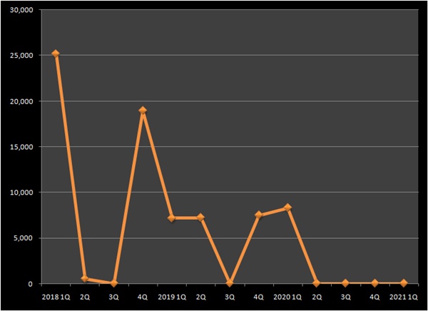 This is a 99.9% drop from the 8.3 billion won recorded in the first quarter of the previous year.