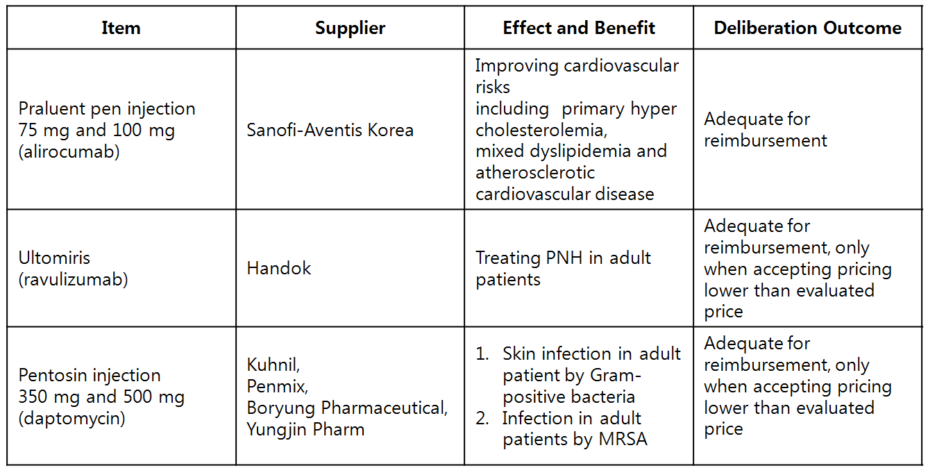 As a result, the reimbursement for Praluent injection was cleared, but Ultomiris and Pentosin were conditionally passed, where the companies would have to accept a pricing lower than the evaluated price.