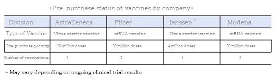 The government decided to pre-purchase more vaccines than vaccines that can be inoculated by 60% of the population, taking into account the possibility of failure of the developed vaccine after discussing experts in the field of vaccines, and proceeding with the procedure for signing a contract for pre-purchase with global companies.