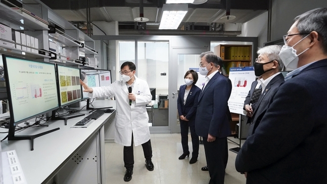 At the time of his visit to Institut Pasteur Korea, President Moon promised government support for the development of vaccines and treatments.