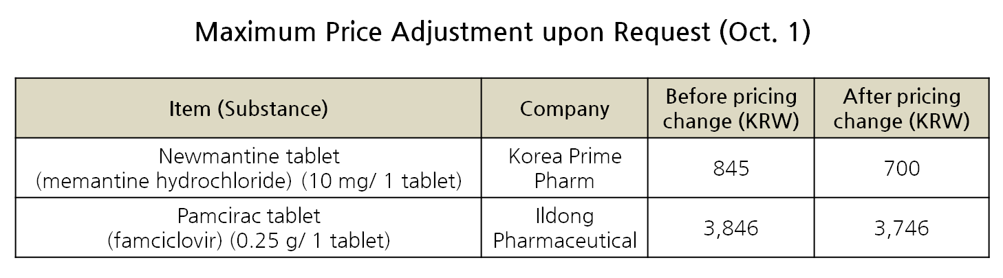 The pricings on Newmantine tablet by Korea Prime Pharm and Pamcirac tablet by Ildong Pharmaceutical would be lowered by 17.2 percent and 2.6 percent, respectively, from next month.