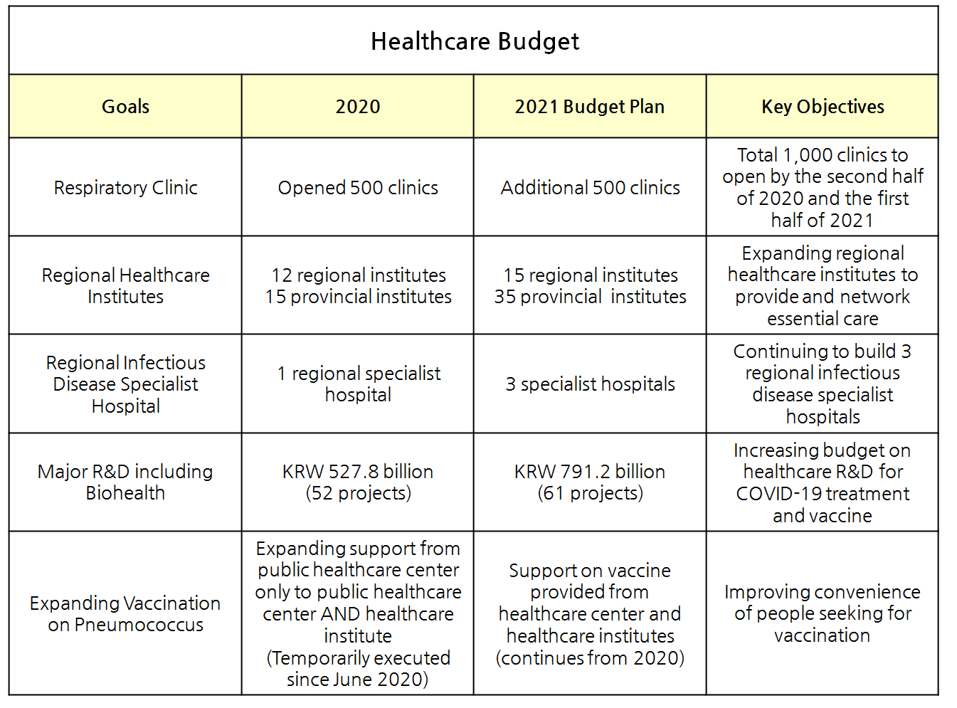 .The government plans to enhance the infectious disease response capacity of regional medical centers and to expand regional healthcare institutes (from 12 to 15), and provincial healthcare institutes (from 15 to 35)