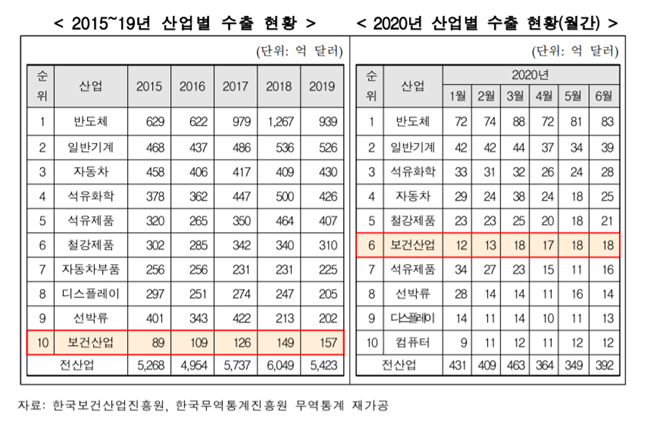 In particular, in the first half of this year, despite the deteriorating external conditions caused by the worldwide spread of COVID-19, the domestic health industry emerged as a growth export industry as it was rated as a 'K-defense' model country.