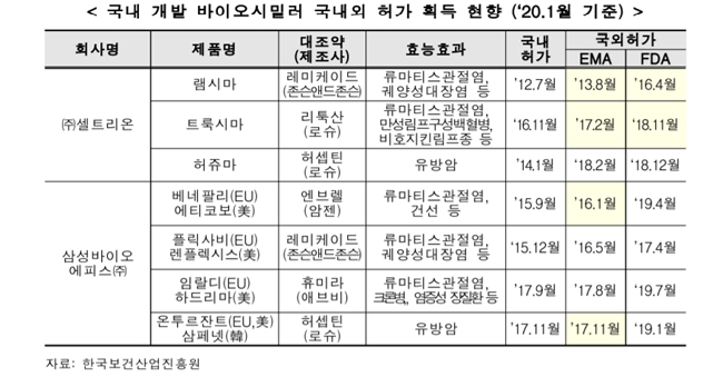 Among domestic pharmaceutical companies, Celltrion and Samsung Bioepis are preoccupying the market by obtaining first biosimilars in Europe and the United States.