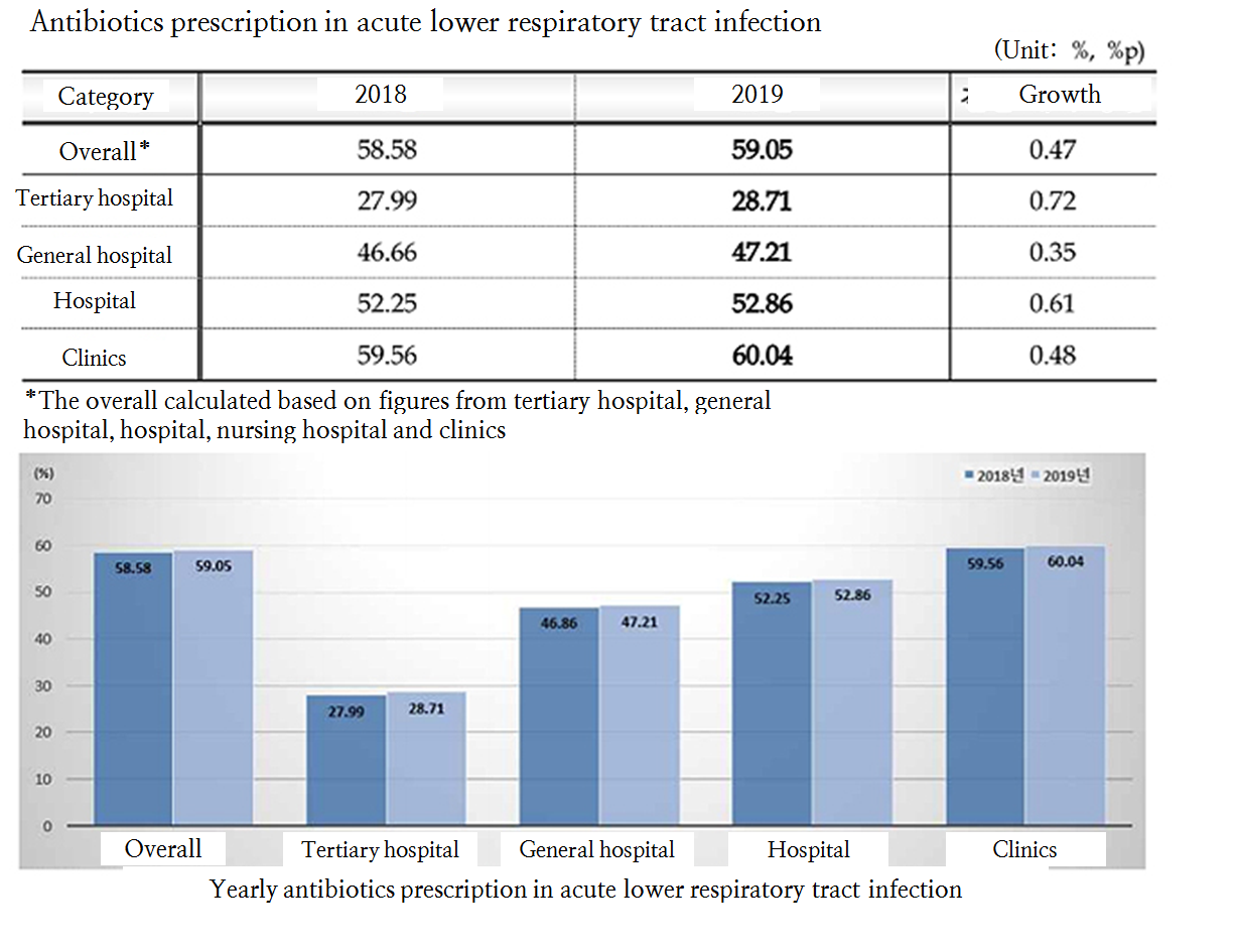 [A look into Drug Reimbursement Evaluation Report 2019] Last year’s antibiotic prescription rate on acute upper respiratory tract infection fell by 0.21 percent from the previous year and was recorded at 38.30 percent.