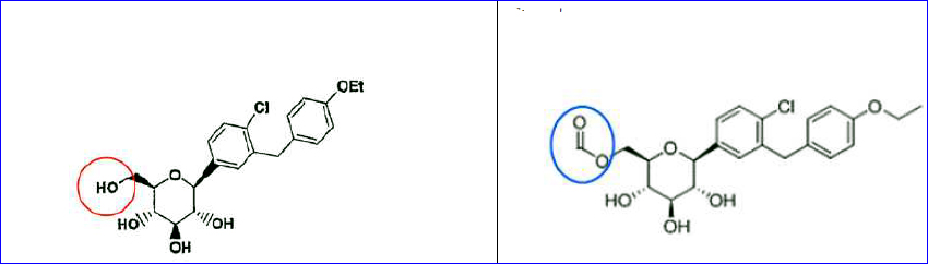 Looking at the trial of the patent trial, Donga ST's product is a prodrug ester compound in the form of formic acid bound to the carbon at the glucose site in the Dapagliflozin molecule.