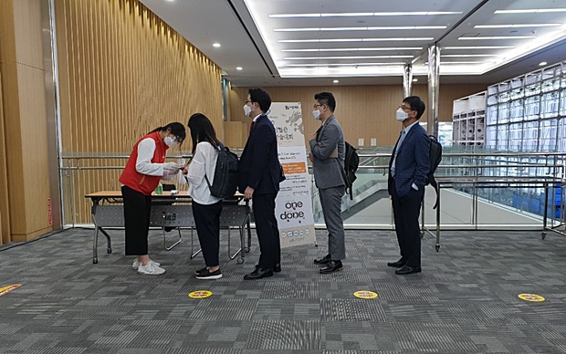 The executives pondered on the subject and finally found the solution; a hybrid event with an offline event strictly following the disease control guideline combined with the real-time presentation streaming online.