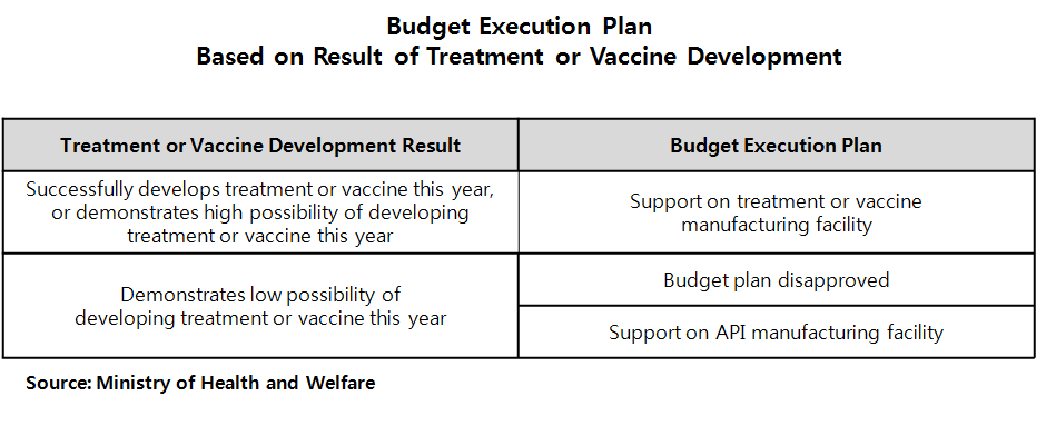 And the Budget Office was disapproving of MOHW suggesting the budget possibly reallocated to manufacture active pharmaceutical ingredient for symptomatic treatment in patients with COVID-19.
