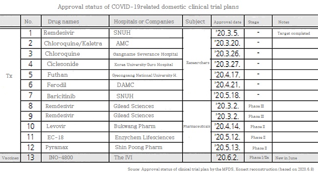 Meanwhile, information on the current status of clinical trials related to COVID-19 can be viewed and downloaded from the Korean Clinical Trial Portal (K-CLIC).