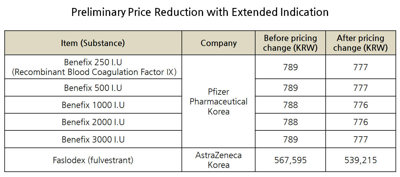 Faslodex injection’s price would be lowered by 5 percent from 567,595 won to 539,215 won.