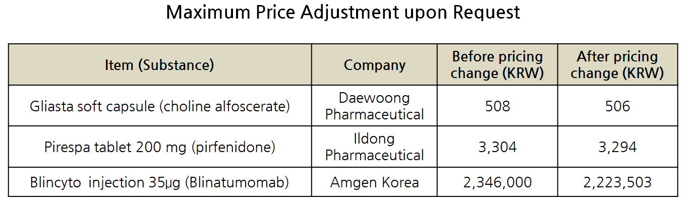 The government adjusts the maximum price as requested, when a drug manufacturer, CMO or importer requests for the pricing lower than the listed maximum price.