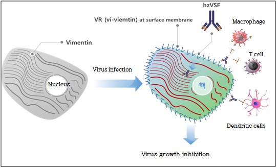 VSF binds to cells infected with viruses and regulates DNA damaging agents and tumor necrosis factors, thereby preventing infected cells from proliferating or inhibiting inflammation.