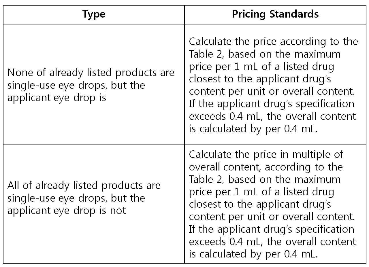 As for eye drop, the applicant product would follow the already-listed eye drop’s pricing calculation, based on whether it is a single-use or multi-use product.
