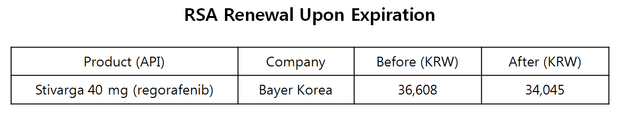 Accordingly, Korea now has three RSA-renewed drugs including Stivarga.