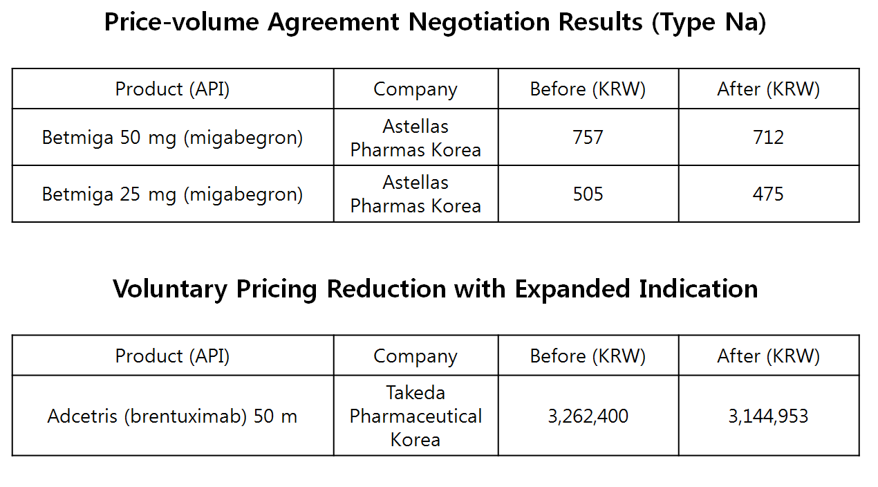 The current reimbursed price is at 36,608 won, and the company has agreed to lower it by 7 percent to 34,045 won after renewing the negotiation.