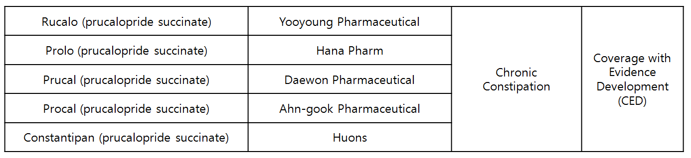 So far, five Korean pharmaceutical companies have applied for reimbursement on chronic constipation treatment, including Yooyoung Pharmaceutical, Hana Pharm, Daewon Pharmaceutical, Ahn-gook Pharmaceutical and Huons.