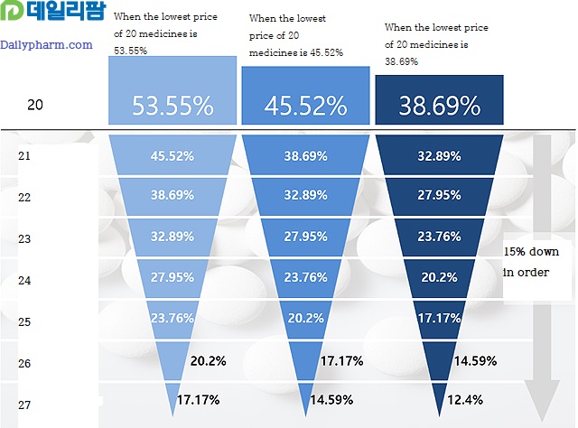 The revised bill for the price standard system, which cuts the generic price by 15% according to its own and co-prosperity into 'stairs' and limits the same number of generics as the so-called 'cut line', was also included in the revised proposal.