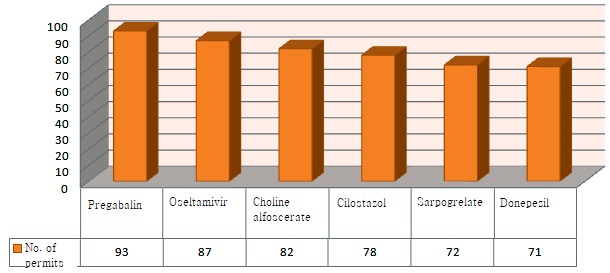 Choline alfoscerate formulations, despite no original patent expiration issues last year, recorded a number of licensed items following Pregabalin (93) and Oseltamivir (87).