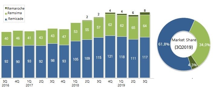 In the same period, Remsima increased 60% from ₩4 billion to ₩6.4 billion.