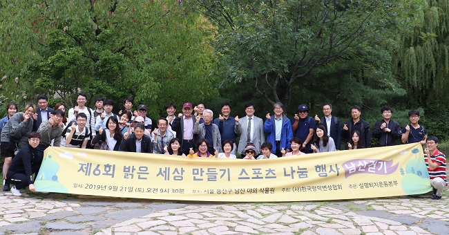 About 40 patients with retinal degeneration and medical professions were taking a group walk on Namsan hiking trail.