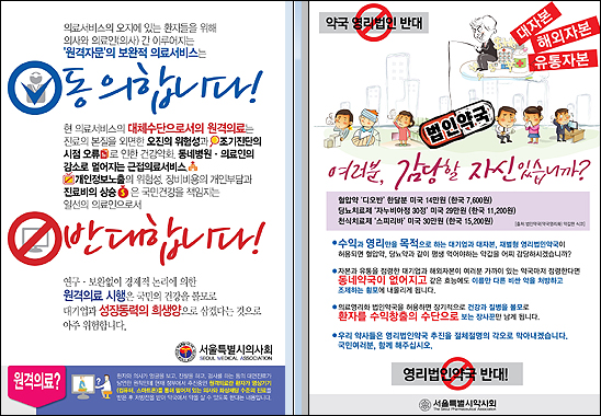 홍보전단지는 앞면에 의사회가 제작한 원격의료 반대 내용이 뒷면에는 약사회가 제작한 법인약국 반대 주장이 담기게 된다. 약국에서 배포될 부수만 50만장이다. 약국당 100장 정도다.