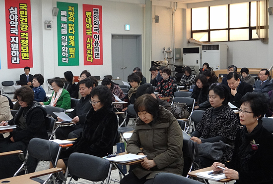 또 시약사회는 정부와 새누리당을 겨냥해 영리법인약국 도입 추진 중단을 촉구하는 성명서를 채택했다. 성명서는 고원규 부회장이 낭독했다.