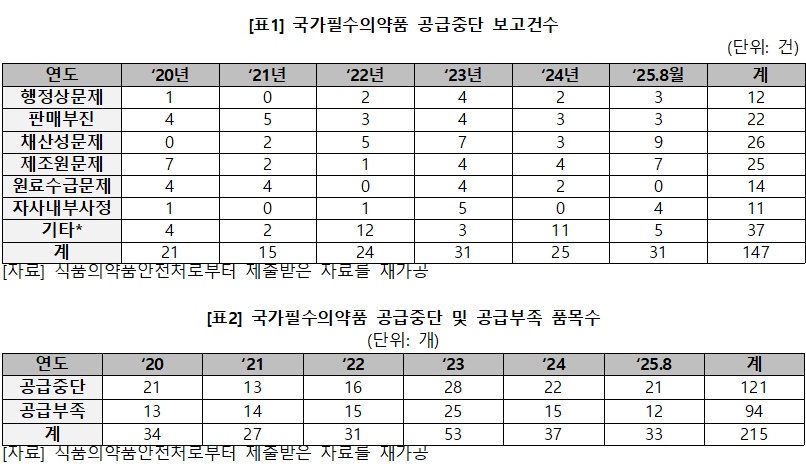 [µ¥Àϸ®ÆÊ=ÀÌÁ¤È¯ ±âÀÚ] ±¹°¡ÇʼöÀǾàǰ ¼ö±Þ ºÒ¾ÈÁ¤ »çŰ¡ ÃÖ±Ù ÇÑÃþ ´õ ½ÉÈÇÑ °ÍÀ¸·Î ³ªÅ¸³µ´Ù. 2021³â 15°ÇÀ̾ú´ø ±¹°¡Çʼö¾à °ø±ÞÁß´Ü º¸°í °Ç¼ö´Â ¿ÃÇØ 31°ÇÀ¸·Î 5³â »õ 2¹è ³Ñ°Ô ´Ã¾ú´Ù.