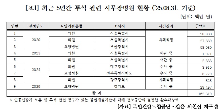 10ÀÏ ´õºÒ¾î¹ÎÁÖ´ç ±èÀ± ÀÇ¿øÀº ±¹¹Î°Ç°º¸Çè°ø´ÜÀ¸·ÎºÎÅÍ Á¦Ãâ¹ÞÀº 'ÃÖ±Ù 5 ³â°£ Åõ¼® °ü·Ã »ç¹«À庴¿ø ÇöȲ' ÀڷḦ ÅëÇØ À̰°ÀÌ ¹àÇû´Ù.