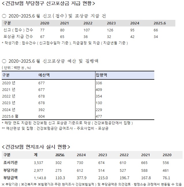 °Ç°º¸Çè ºÎ´çû±¸ ½Å°í °Ç¼ö´Â 2022³â 107°Ç¿¡¼ 2023³â 126°Ç, 2024³â 95°ÇÀ¸·Î °¨¼Ò Ãß¼¼À̸ç, ¿ÃÇØ »ó¹Ý±â 66°ÇÀ¸·Î Áý°èµÆ´Ù.